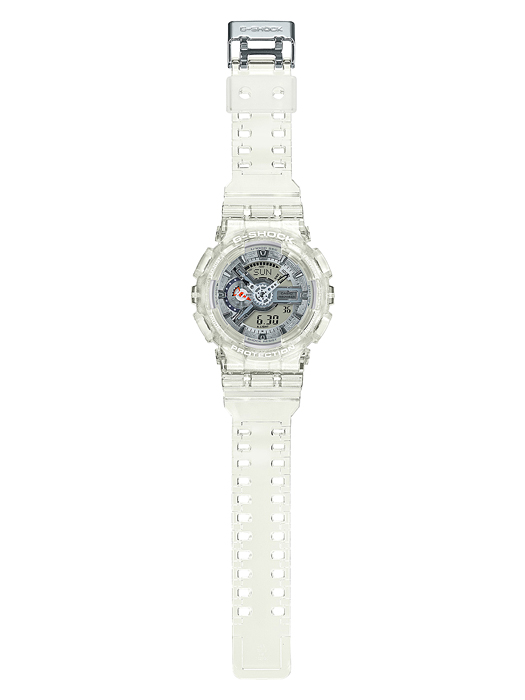 A model inspired by the design of the GA-110, a popular model in the G-SHOCK big case series. The GA-110 combines various parts such as the dial and indices in a complex manner. Its gear-inspired parts and three-dimensional dial create a complex, mechanical impression. This model is smaller and thinner to fit a feminine wrist while retaining the coolness of G-SHOCK. The three-dimensionally arranged indices are painted with a glittering, metallic coat for a refined texture. This gives the watch a sharp and energetic impression. The side buttons are made easy to press and are thus more practical. The BABY-G, a watch with a complex mechanical dial that gives it personality and looks great on the street fashion scene.