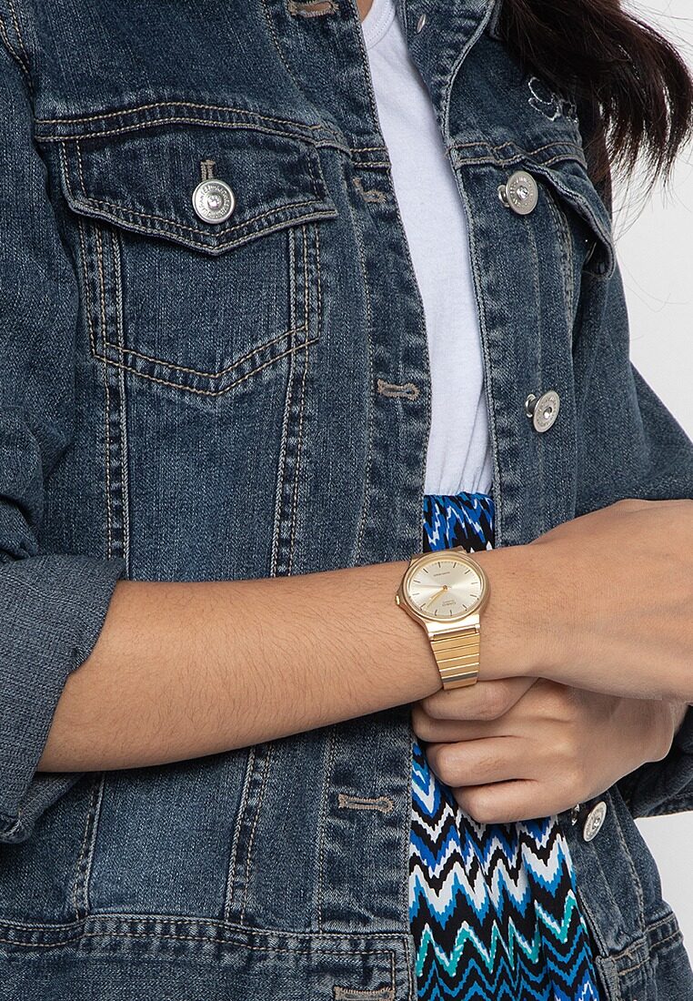 • Design: Gold-plated/toned stainless steel band with a gold dial, resin case, and acrylic crystal, creating a vintage and elegant aesthetic.