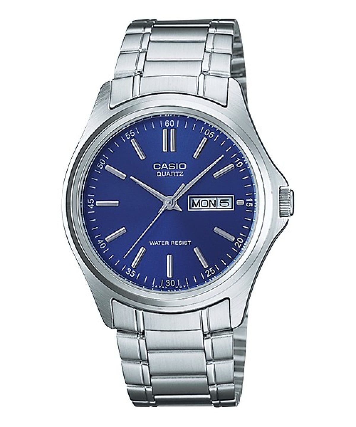The Casio MTP-1239D-2ADF is a classic men’s analog watch featuring a stainless steel case and bracelet, a blue dial with silver-tone hands and markers, and a day/date display. It uses a precise Japanese quartz movement and has a mineral crystal, a one-touch 3-fold clasp, and 30-meter water resistance. This watch is designed for men who want a functional and stylish timepiece suitable for various occasions, from formal events to everyday wear.