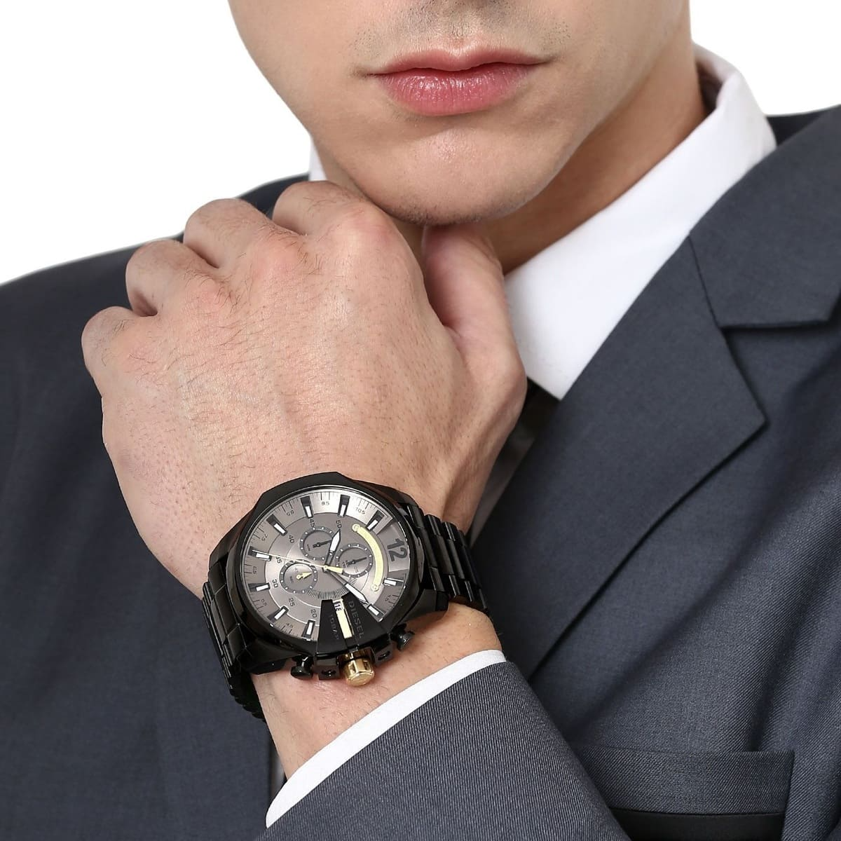 This watch is ideal for men with a bold, modern fashion sense who want a large, statement-making accessory. Its robust build and chronograph function make it suitable for those with active lifestyles.