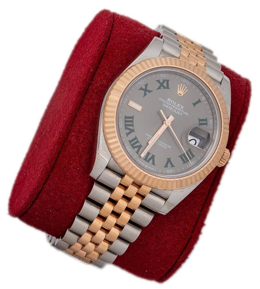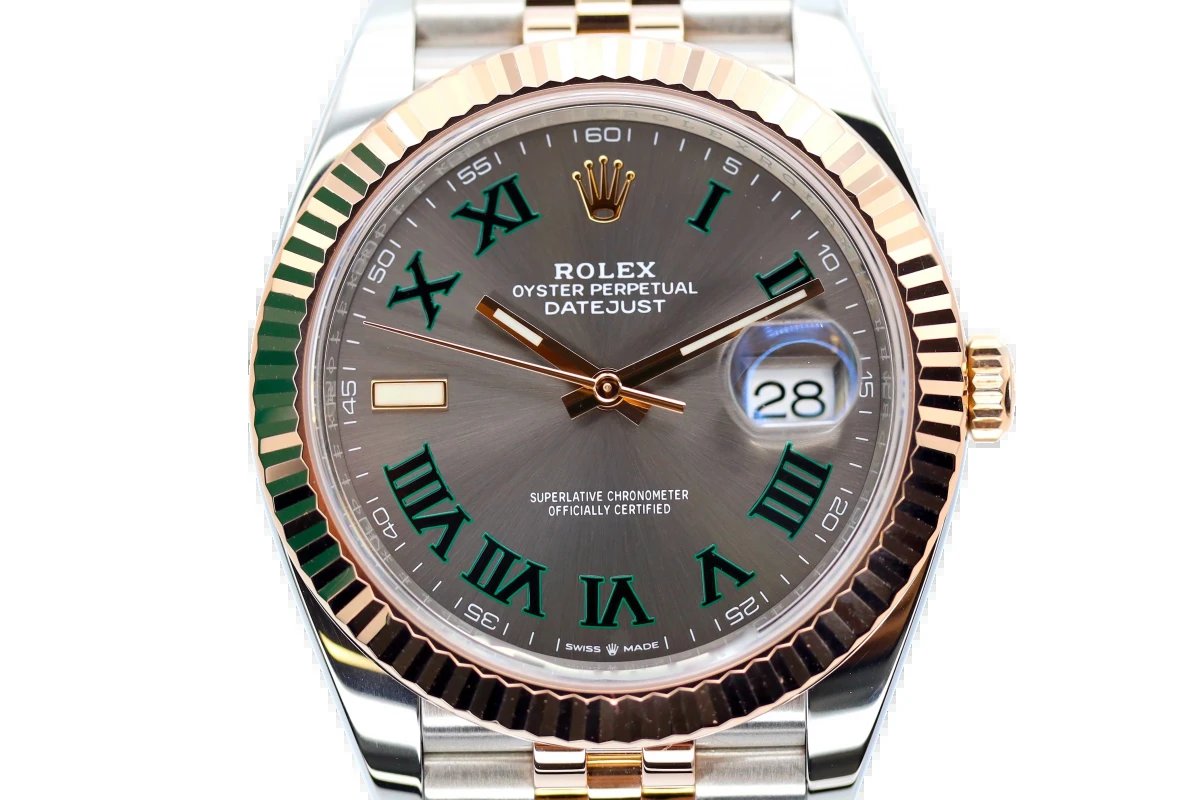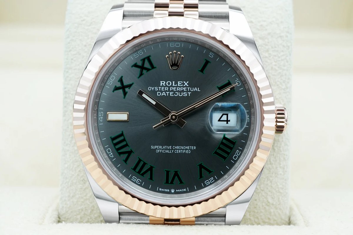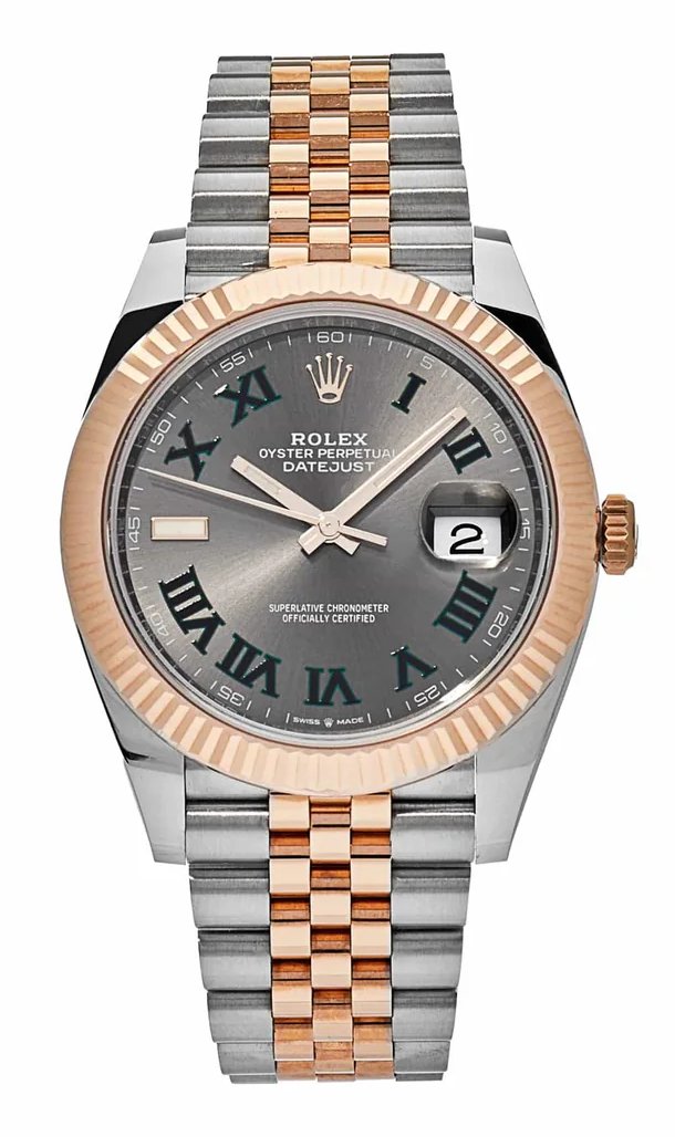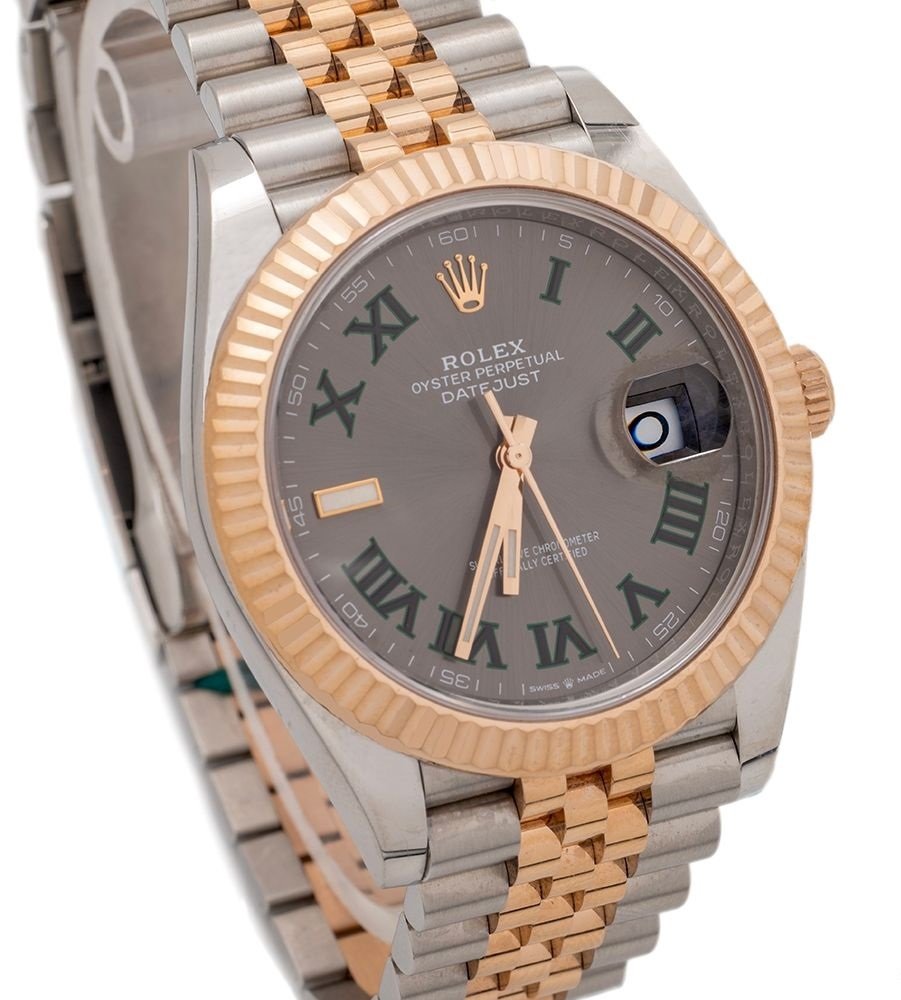 Rolex Datejust 41 Rose Gold/Steel “Wimbledon” Slate Roman Dial Fluted Bezel Oyster Bracelet
