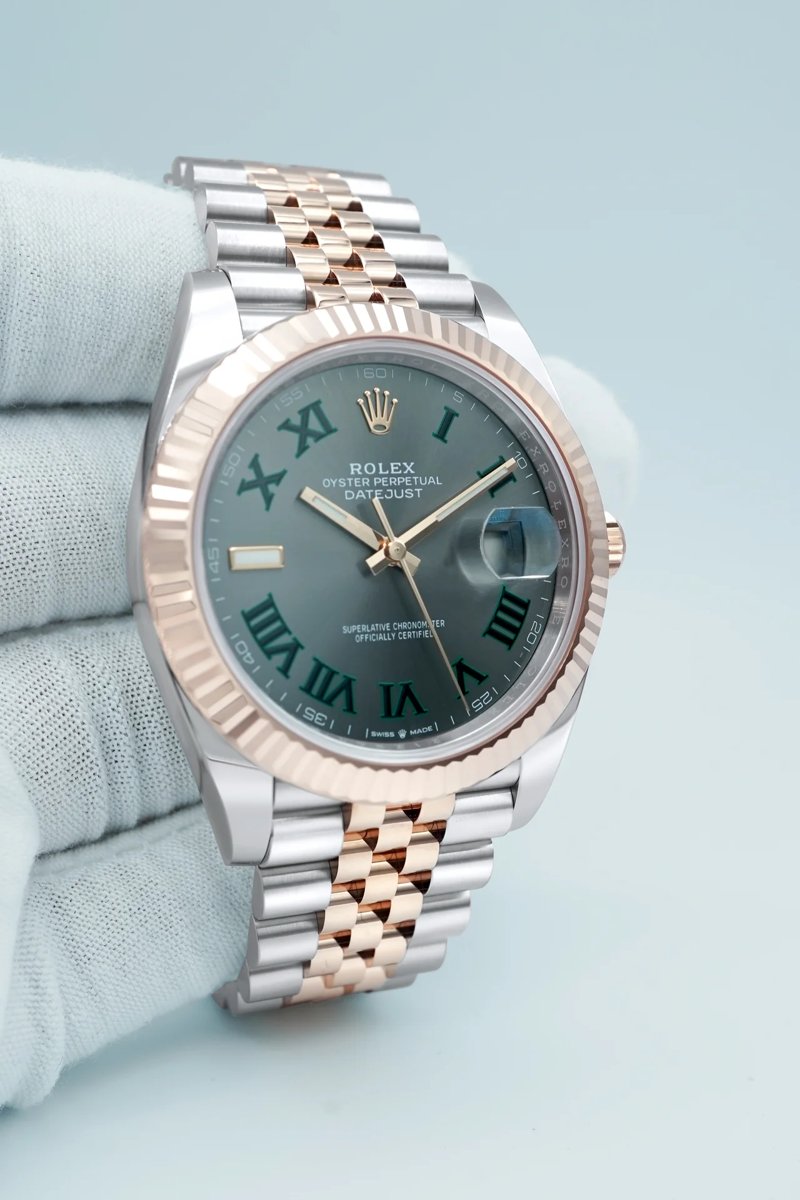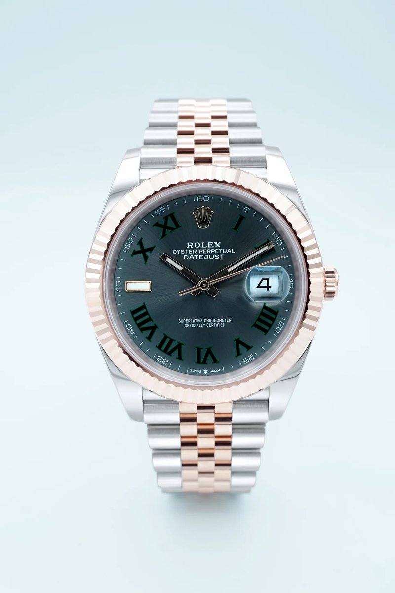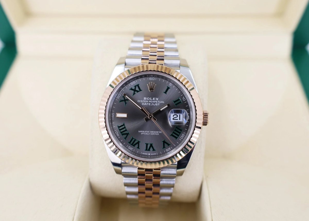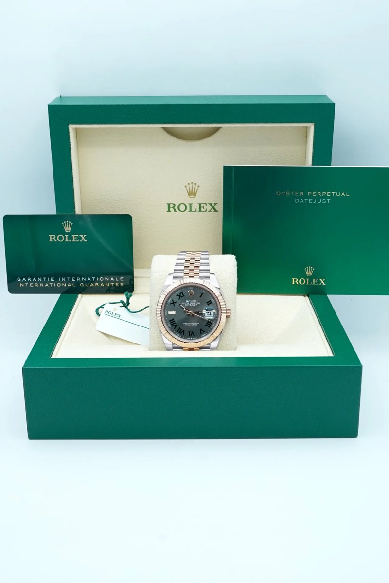 Rolex Datejust 41 Rose Gold/Steel “Wimbledon” Slate Roman Dial Fluted Bezel Oyster Bracelet